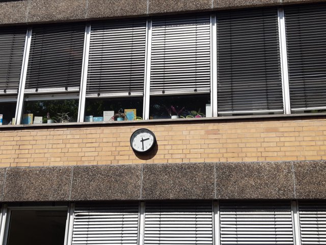 Um eine bessere zeitliche Orientierung für die Kinder zu ermöglichen, wurden drei Funkuhren für den Hofbereich besorgt und durch den Hausmeister installiert (2023).