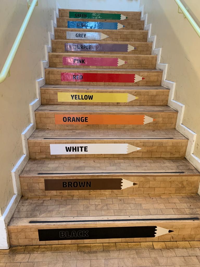 Auf Initiative eines Elternteils wurden Klebefolien für die Treppe in Hort organisiert, finanziert und angebracht (dieses ebenfalls durch die Initiatoren, 2022)
